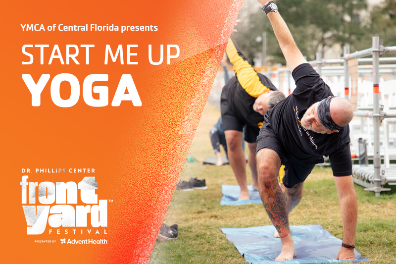 YMCA instructor Ajay Schweiger is hosting a yoga class at the Dr. Phillips Performing Arts Center’s Frontyard Festival™!