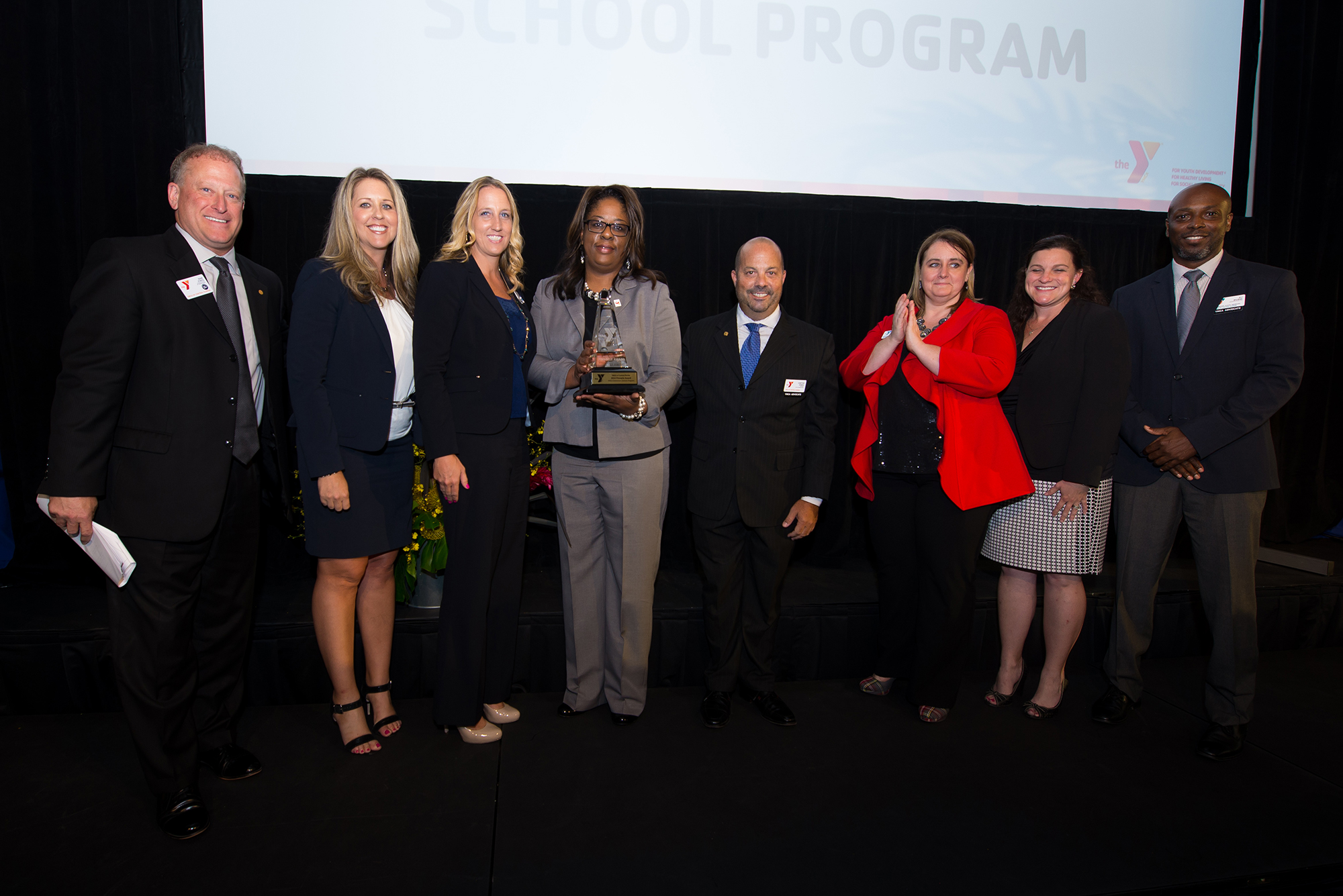 The YMCA Elementary Program received the Pinnacle Award for outstanding achievements in revenue growth, volunteer support and financial stewardship. Carter Jones, YMCA District Vice President, and Nancy Bryant, Executive Director of the YMCA Elementary School Program received the 2014 Jim Ferber Award for outstanding leadership and unwavering commitment to the Y cause and mission.