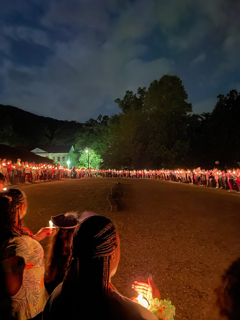 Before getting on the bus to depart, we reflect on the week during a bonfire ceremony.